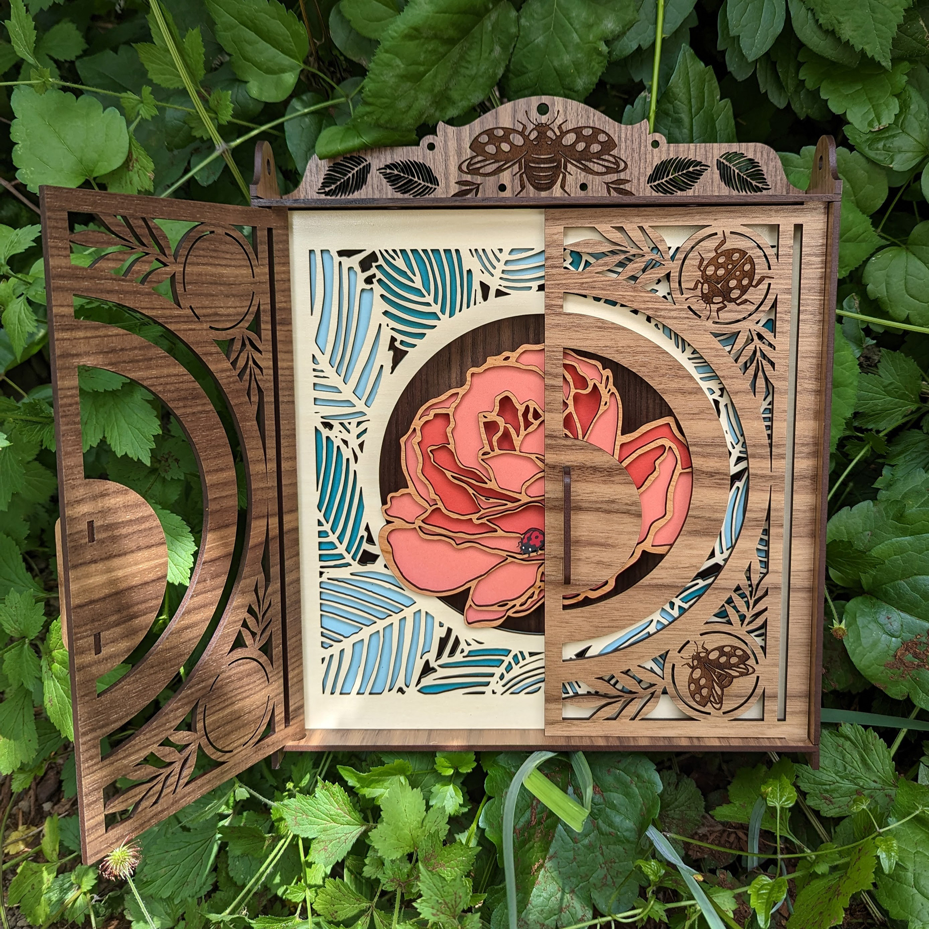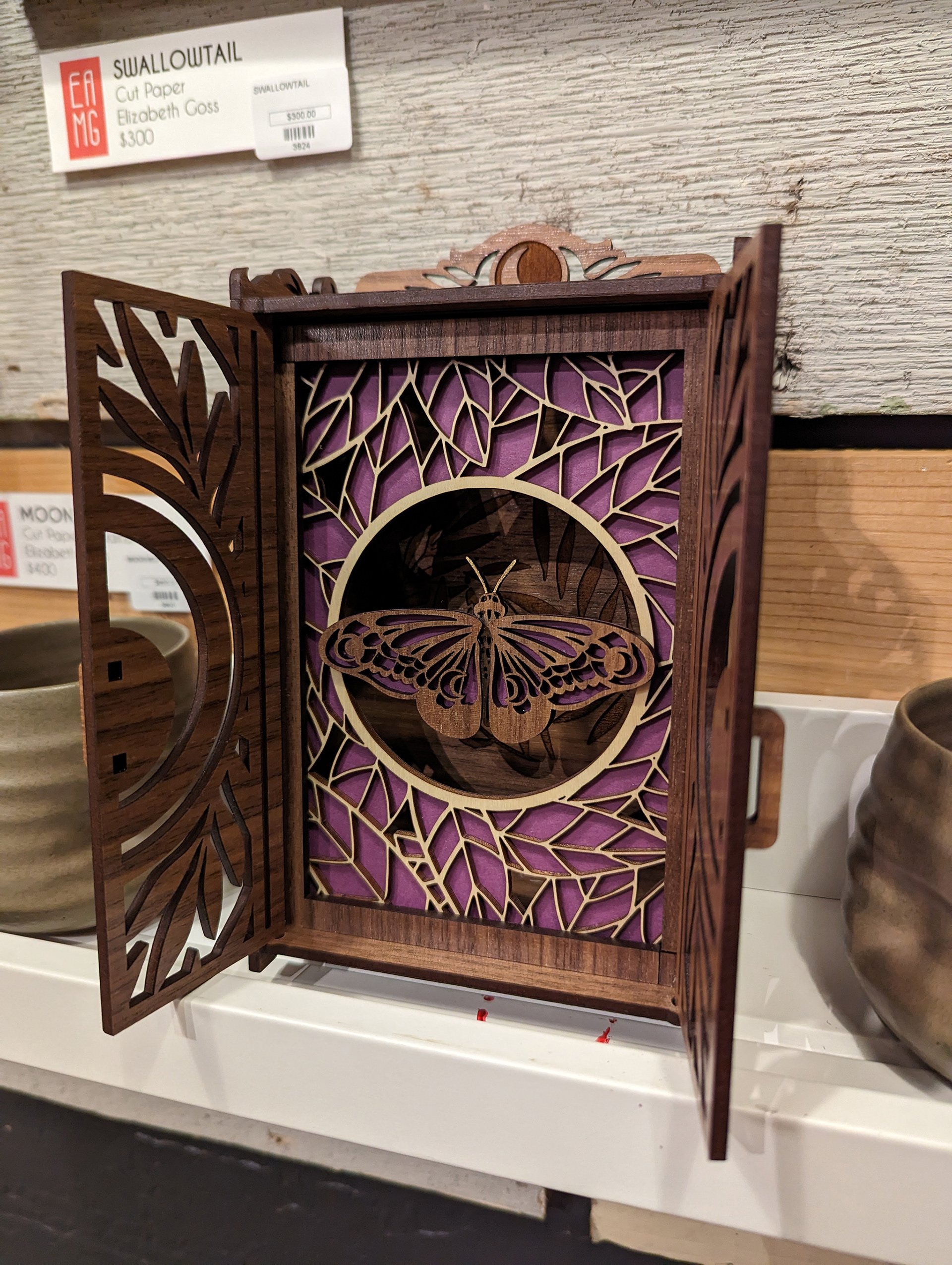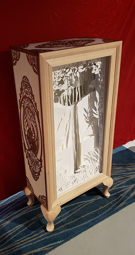 I love creating three dimensional work. Sometimes I use dozens of handcut paper layers and spacers to give my pieces depth. Other times, I use my lasercutter to reproduce my original papercuts in hardy materials like wood or aluminum.